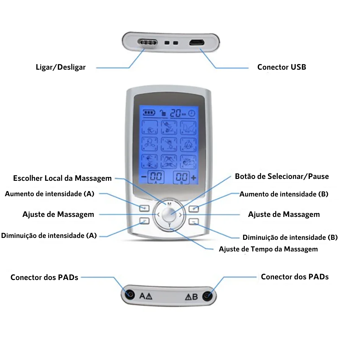 Recuperação Rápida: Ao utilizar regularmente o Aparelho de TENS, você pode acelerar o processo de recuperação após lesões, cirurgias ou esforços físicos intensos. O estímulo elétrico suave promove a circulação sanguínea, reduz o inchaço e ajuda a reparar os tecidos afetados.
