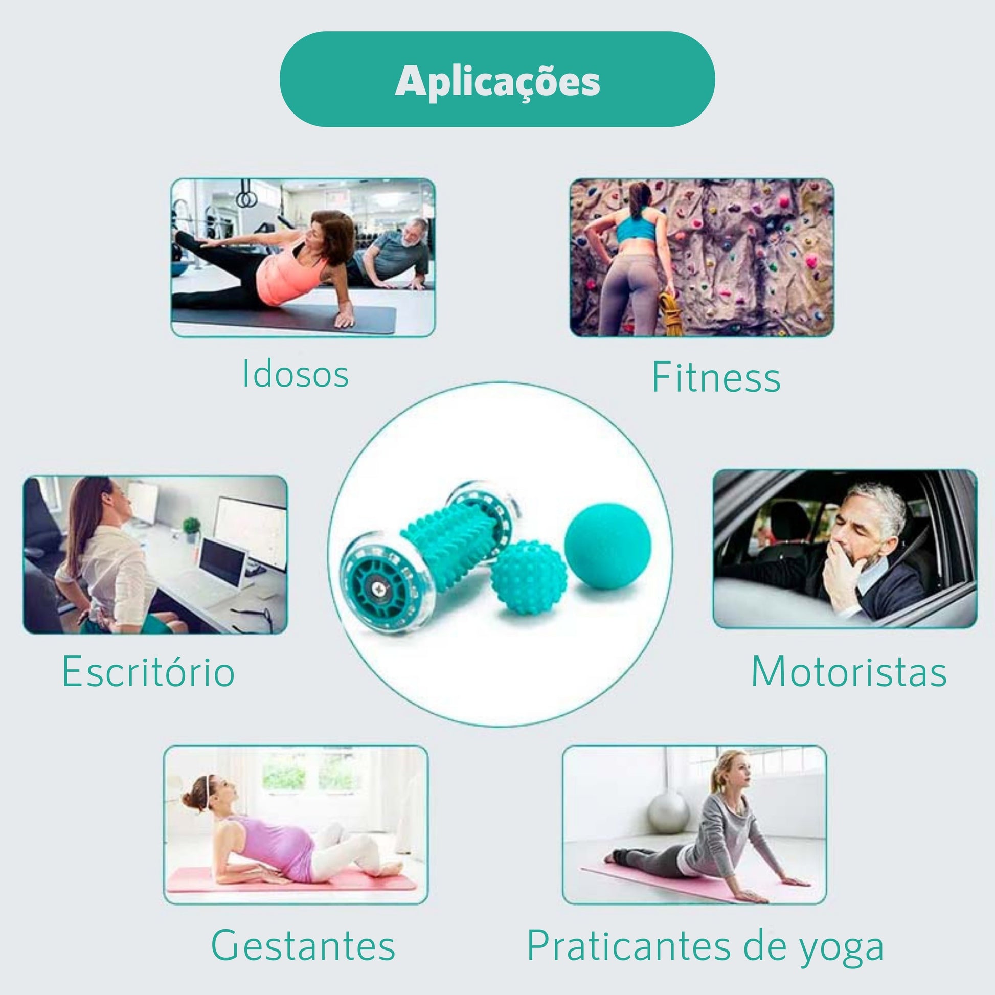 - Bolas Massageadoras: Pressione as bolas sobre áreas específicas para uma massagem direcionada e alívio profundo.